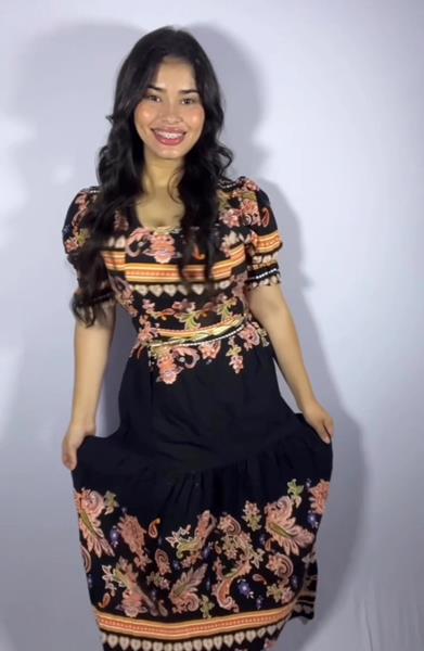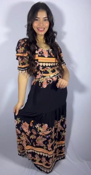 Vestido longo com estamparias